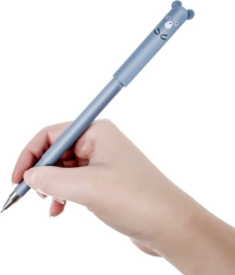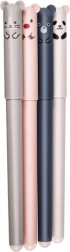 Sada obsahuje 4 štýlové vymazateľné perá v farbách sivá, biela, ružová a modrá s hravými motívmi zvieratiek (prasiatko, panda, myška, medvedík). Vďaka termocitlivému atramentu ľahko opravíte drobné chyby – stačí použiť mazaciu gumičku na konci pera a písať znova, bez nevzhľadných škrtov.