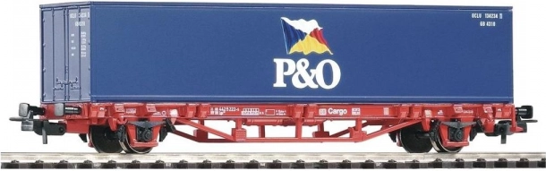 Model plošinového vozňa PIKO Lgs579 verne zachytáva prevádzkový vzhľad vozňov DB AG éry V. Súčasťou je voľne uložený 40' kontajner P&O s detailnou potlačou, ktorý možno ľahko zameniť za iné kontajnery a prispôsobiť tak svoj kontajnerový vlak.