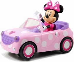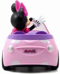 RC autíčko s Disney Minnie, 1-kanálové, frekvencia 2,4 GHz, jazdí dopredu rovno a dozadu. V ružovej farbe. Dĺžka 19 cm.