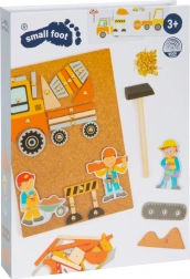 Táto kreatívna zatĺkacia sada na korkovej doske je skvelou voľbou pre malých staviteľov a milovníkov dopravy. Deti si môžu z drevených tvarov vytvoriť pracovníkov, miešačku, žeriav alebo autá a pomocou pripináčikov ich bezpečne pripevniť ku korkovej tabuli. Praktický úložný box zaistí, že sa žiadny dielik nestratí.