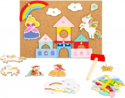 Ponorte sa do magického sveta kreatívnej zábavy so Zatlĺkacou hrou Jednorožec. Táto hra umožňuje vašim deťom vytvárať rôzne scénky a príbehy za pomoci priloženého kladivka a pestrých drevených tvarov. Sada obsahuje aj predlohy, ktoré môžu deti inšpirovať k vytvoreniu rozprávkových obrazov.