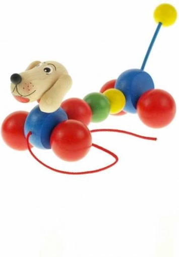 Veselý drevený psík, ktorý vrtí chvostom pri pohybe, poteší deti všetkých vekových kategórií. Je vyrobený z kvalitného dreva a má pestrofarebný dizajn.
