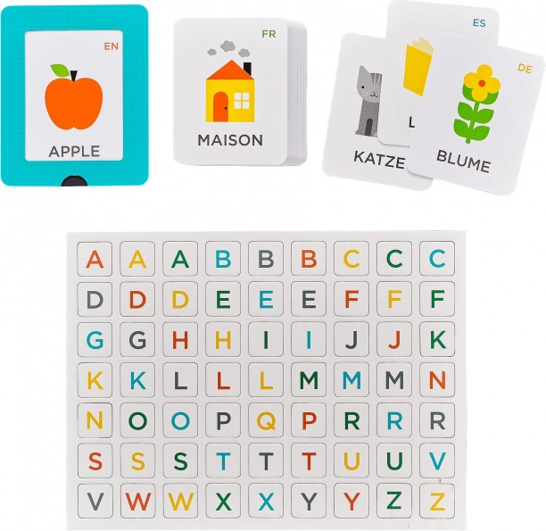 Objavte hravé učenie abecedy s viacjazyčným setom od Petit Collage. Deti sa zoznámia s písmenami a základnou slovnou zásobou v angličtine, nemčine, španielčine a francúzštine, a to vďaka prehľadným kartám a magnetickým písmenám, ktoré možno ľahko skladať a opakovane používať.