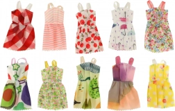 Sada obsahuje 10 sukničiek pre bábiky s rôznymi vzormi ako sú prúžky, kvetinové a abstraktné motívy.