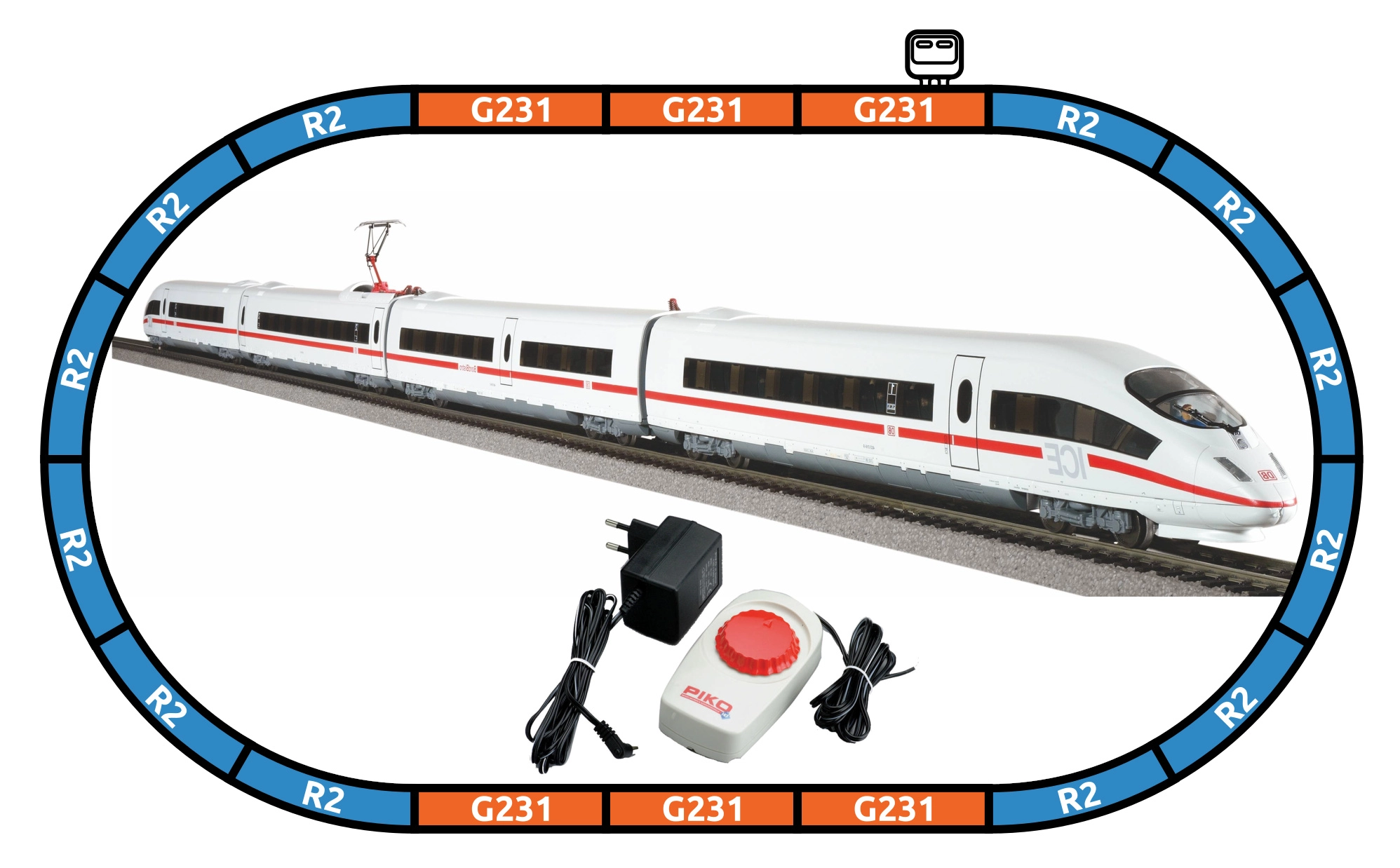 Táto kvalitná štartovacia sada je ideálna pre začiatočníkov aj pokročilých modelárov. Obsahuje štvor­dielnu elektrickú súpravu ICE 3 nemeckého dopravcu DB AG, oválne koľajisko s podložím a základný analógový ovládač so zdrojom. Vďaka rozhraniu NEM 652 možno lokomotívu jednoducho dovybaviť digitálnym dekodérom a zvukovým modulom.