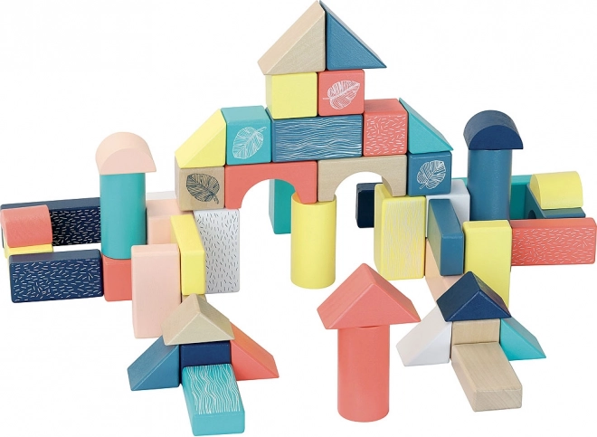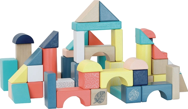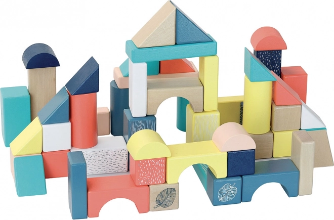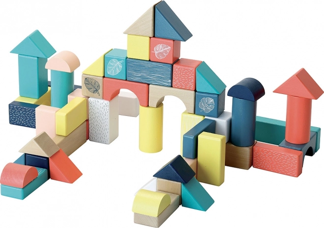 Táto sada drevených kociek Canopée ponúka pestrú kombináciu farebných a prírodných dielikov v mnohých tvaroch – od kvádrov a kociek po oblúky, valčeky a trojuholníky. Deti môžu stavať veže, domy aj celé mestečko, rozvíjať fantáziu a učiť sa základným princípom rovnováhy.