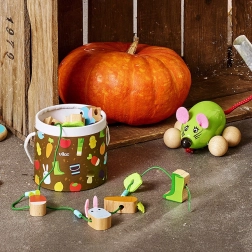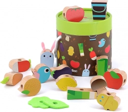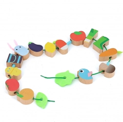 Hračka je vyrobená z kvalitného dreva a maľovaná zdravotne nezávadnými farbami. Textilná šnúrka s bezpečnostnými sponami zaisťuje ľahké a bezpečné navliekanie, takže sa deti môžu hrať samostatne aj s rodičmi. Prevliekacia hra podporuje rozvoj jemnej motoriky, logického myslenia a vizuálnej percepcie.