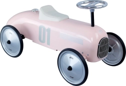Ružové odrážadlo je inšpirované klasickými závodnými autami a dodá deťom pocit skutočného závodníka.
