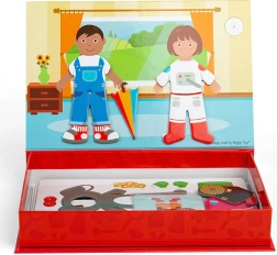 Podporte detskú kreativitu s novým magnetickým puzzle Šaty od Bigjigs Toys. Deti môžu obliekať dvojicu postavičiek pomocou magnetických obrázkových dielikov, čo umožňuje neobmedzenú kreatívnu hru a rozprávanie príbehov.