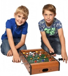 Tento menší stolný futbal je ideálnou voľbou pre všetkých milovníkov futbalu, ktorí si chcú užiť zábavu aj doma. Je skonštruovaný z farebného a lakovaného dreva, čo zaisťuje jeho dlhú životnosť. Každý tím má 6 futbalistov umiestnených na dvoch tyčiach, ktoré umožňujú jednoduché ovládanie a simuláciu skutočného futbalového zápasu.
