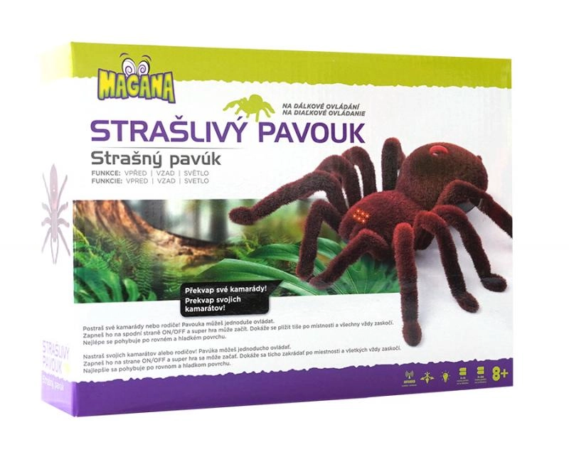 Pavúk sa realisticky plazí a jeho oči aj zadoček svietia, takže je v tme ešte desivejší a zábavnejší.