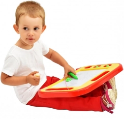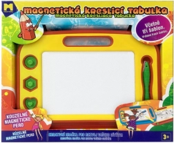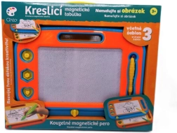 Magnetická kresliaca tabuľka je ideálnou voľbou pre malých umelcov doma aj na cestách. Vďaka kúzelnému magnetickému peru a trom pečiatkam si deti užijú hodiny tvorenia bez potreby papiera a pasteliek. Jediným posunutím mazacej lišty obrázok zmizne a plocha je pripravená na ďalšie dielo.