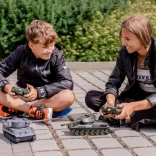 Vstúpte do sveta taktických súbojov s dvojbalením RC tankov STARX. Vďaka nezávislému ovládaniu oboch pásov sa tanky plynulo otáčajú na mieste, jazdia všetkými smermi a otočná veža s kanónom dodá každej bitke ten správny adrenalín. Stlačením tlačidla FIRE spustíte realistické zvukové a svetelné efekty.