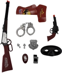 Premeňte detskú izbu na prérie Divokého západu. Táto hracia sada pre malých kovbojov ponúka všetko potrebné na dobrodružné scénky – od „šerifských“ pút až po „kolt“, ktorý doplní kostým aj fantáziu. Ľahké a jednoducho ovládateľné doplnky sú prispôsobené detským rukám.