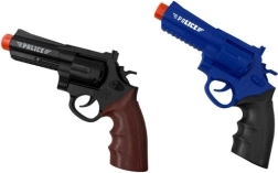 Zábavná hračka pre malých dobrodruhov – revolver, ktorý po stlačení spúšte vydáva realistický zvuk streľby. Ľahký, kompaktný a ľahko ovládateľný na detské hry na policajtov a banditov.