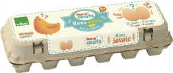 Zvukové pexeso v tvare vajec v klasickom kartónovom obale je ideálne pre rozvoj senzorických schopností u detí. Hračka podporuje pamäť tým, že deti hľadajú dvojice vajíčok s rovnakým zvukom.