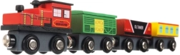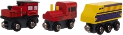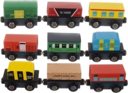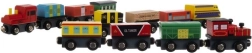 Set obsahuje 3 lokomotívy a 9 vagónikov v rôznych farbách, ponúka tak pestrú zábavu.