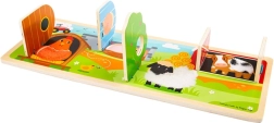Deti môžu nahliadať za vrátka a objavovať schované zvieratká, čo podporuje jemnú motoriku, koordináciu ruka–oko a zábavné učenie.