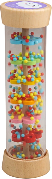 Dažďový valec Bigjigs Baby je zmyslová hračka, ktorá deti zaujme svojím upokojujúcim šumom a pestrými farbami. Vo vnútri priehľadného valca putujú guľôčky cez farebné disky, čím napodobňujú jemný dážď. Obe čelá zdobia roztomilé motívy slnka a obláčika, ktoré podporujú vizuálne vnímanie.
