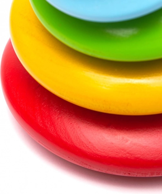 Pevné drevo a netoxické farby zabezpečujú bezpečné hranie. Hladký povrch sa dobre drží aj najmenším ručičkám.