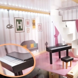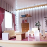 Studeno biele LED diódy pozdĺž stropov miestností krásne rozžiaria celý domček a podčiarknu detaily interiéru. Napájanie 3× AA (nie sú súčasťou balenia).