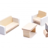 V balení nájdete 16 kusov nábytku: stôl, stoličky, posteľ, lampu, kreslo, pohovku, konferenčný stolík, televízor, klavír, lavicu, ležadlo, slnečník, sprchu, umývadlo a toaletu.