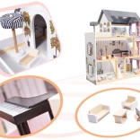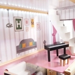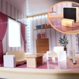 Trojposchodový domček pre bábiky s výškou 78 cm je navrhnutý na dlhé hodiny kreatívnej hry. Realistické potlače interiéru, schodisko a otvorená konštrukcia zabezpečujú ľahký prístup do všetkých miestností. Integrovaná LED svetelná lišta krásne presvieti izby a vykúzli útulnú atmosféru pri hraní.