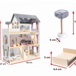 Súčasťou je bohaté príslušenstvo vrátane nábytku do obývačky, spálne, kuchyne aj kúpeľne, ďalej terasa s ležadlom a slnečníkom. Domček je skvelým darčekom pre deti od 3 rokov aj nadšencov do miniatúr a fotografov.