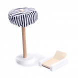 Strešná terasa s ležadlom a pruhovaným slnečníkom je ideálna na relax vašich bábik a dotvára realistické scénky zo života.