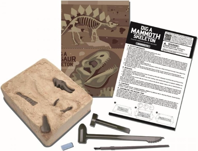 Táto interaktívna vykopávacia sada premení váš stôl na malé paleontologické nálezisko. Pomocou priloženého dláta a štetca deti opatrne odhaľujú jednotlivé kosti a následne z nich poskladajú detailný model kostry mamuta. Zábava sa tak spojí s učením a výsledkom je pôsobivý exponát do detskej izby.