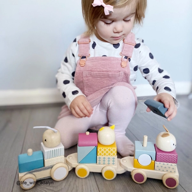 Všetci na palubu! Tento roztomilý drevený ťahací vláčik zo 100% FSC dreva prináša zábavu aj učenie v jednom. Ponúka troch zvieracích pasažierov, rušeň a dva vagóniky a vďaka farebným kockám poslúži ako nasadzovačka aj puzzle na rozvoj jemnej motoriky a počítania. Hladké prevedenie, netoxické farby a odolné materiály zaručujú bezpečné hranie na dlhé roky.