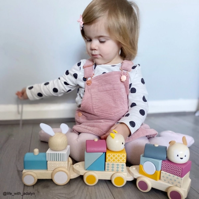 Vláčik deti zabaví ako ťahacia hračka aj ako nasadzovačka a puzzle. Rôzne kombinácie kociek podporujú fantáziu, trpezlivosť a koordináciu.