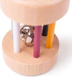 Deti môžu toto hrkálka nielen triasť a hrkať, ale tiež kotúľať po povrchu. Vďaka farebným stĺpikom v 6 rôznych odtieňoch a lesklej rolničke uprostred rozvíja hrkálka koordináciu ruka-oko. Je odolné a ľahké, čo zaručuje pohodlné uchopenie.
