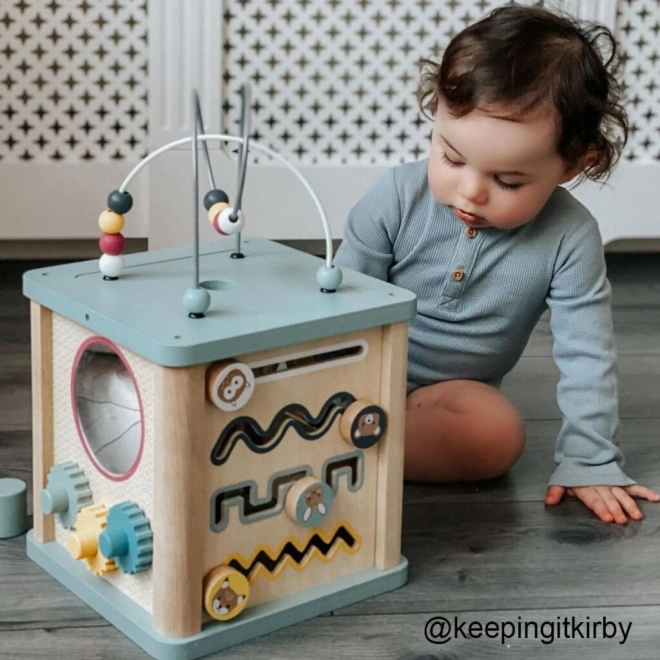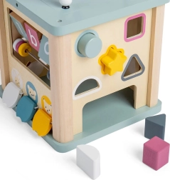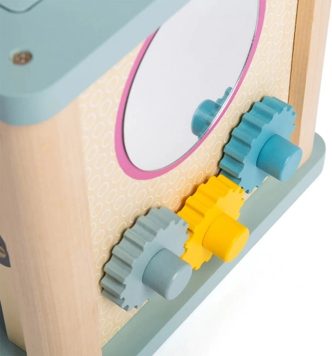 Objavte všestrannú motorickú kocku z kvalitného 100% FSC dreva, ktorá deti zabaví na dlhé hodiny. Na každej strane čaká iná aktivita – vkladacie tvary, guľôčková dráha, ozubené kolieska a ďalšie. Kombinácia prírodného dreva a jemných pastelových farieb je ideálna pre chlapcov aj dievčatá. Hračka podporuje rozvoj motoriky, komunikácie a rozpoznávania čísel a je bezpečná pre deti vďaka šetrným materiálom s certifikáciou FSC.