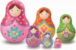 Matriošky sa postupne zmenšujú a vkladajú do seba. Zábavné skladanie aj krásne vystavenie na poličke.