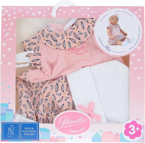 Oblečenie Mia pre bábiky od Petitcollin prináša francúzsku eleganciu a jedinečné vzory. Tento set je ideálny pre bábiky s výškou 35 cm a obsahuje overal, čiapku a ponožky.