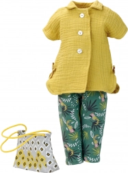 Elegantná sada oblečenia pre bábiky PETITCOLLIN radu Finouche vo veľkosti 48 cm. Obsahuje okrovú blúzku, zelené nohavice s tropickým vzorom, štýlovú tašku a ladiacu čelenku. Kvalitné spracovanie, francúzska elegancia a nezameniteľný dizajn potešia každú malú stylistku.