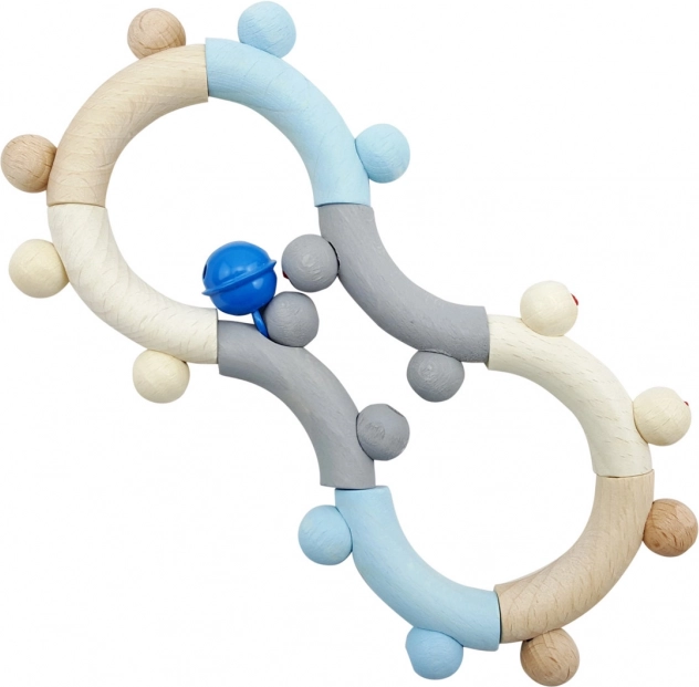 Vysokokvalitná drevená hrkálka, ideálna na stimuláciu predstavivosti a rozvoj jemnej motoriky dieťaťa. Hrkálka zaujme svojimi pastelovými farbami a je eticky vyrobená z ekologicky obhospodarovaných lesov.