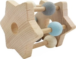 Objavte kvalitnú drevenú hrkálku, ktorá vďaka precíznemu spracovaniu a jemným farbám prirodzene stimuluje pozornosť bábätka. Tvar hviezdičky skvele padne do malých ručičiek a bezpečné materiály zaisťujú pokojné hranie každý deň.