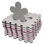 Podložku možno zostaviť na plocho (cca 140 × 140 cm) alebo vytvoriť ohrádku pomocou bočných líšt a rohov. Materiál EVA je vodoodolný a ľahko sa čistí – stačí utrieť vlhkou handričkou. Sada je dodávaná v praktickom prenosenom puzdre, takže ju ľahko vezmete na návštevu alebo upracete, keď sa práve nepoužíva.