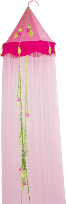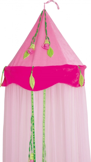 Tento baldachýn je zdobený rôznymi ružičkami a zelenými listami, ktoré dodávajú každej miestnosti hravý a zároveň elegantný vzhľad.