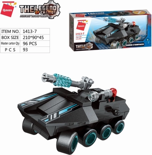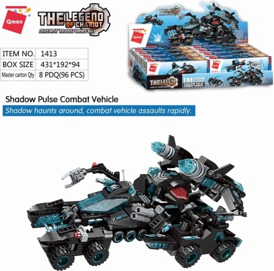 Stavebnica Qman Shadow Pulse ponúka možnosť kreatívneho zostavenia zo 714 dielikov. Každá z 8 stavebníc môže byť samostatným modelom, alebo sa môže pripojiť k ostatným pre vytvorenie veľkého bojového vozidla. Táto stavebnica, vyrobená z kvalitného a odolného ABS plastu, je kompatibilná s Lego, Sluban, Cobi a ďalšími. Každá časť setu je samostatne zabalená v pestrofarebných krabičkách, čo prináša ľahkosť skladovania a organizácie.