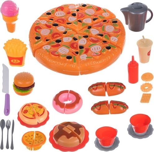 Súprava hračiek na rýchle občerstvenie je perfektná pre malých kuchárov a kuchárky, ktorí si chcú hrať na prípravu obľúbených jedál. Deti môžu tvoriť vlastné kombinácie vďaka 42 prvkom, ktoré táto súprava obsahuje. Hravé farby a realistický dizajn jednotlivých častí pôsobia veľmi vierohodne a podnecujú detskú predstavivosť.
