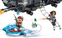 Vstúpte do sveta akčných misií s policajnou jednotkou, ktorá zločincom nedá šancu. Vrtuľník s funkčnými rotormi a spúšťacím povrazovým rebríkom umožní bleskový výsadok priamo do centra diania, zatiaľ čo prenasledovaný uteká na prestaviteľnom stroji – z motorky na vodný skúter počas chvíľky.