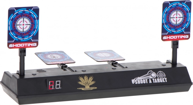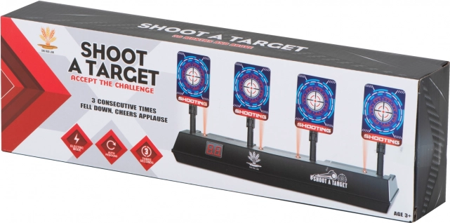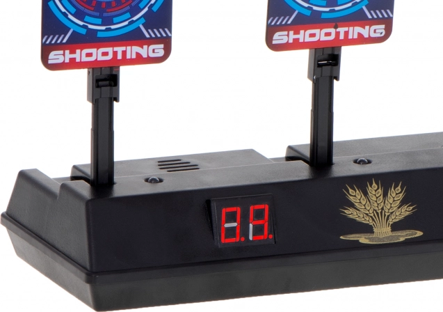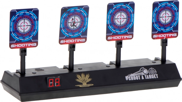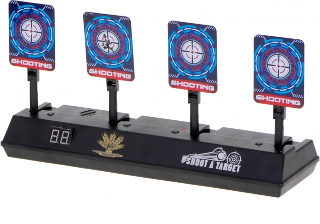 LED displej prehľadne počíta body a po zásahu všetkých štyroch cieľov sa terče samy zdvihnú – hra plynule pokračuje bez ručného nastavovania.