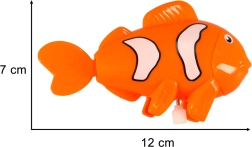 Táto oranžová rybka premení každý kúpeľ na radosť. Stačí pár otočení kľúčikom a hračka sa vďaka nátahovaciemu mechanizmu dá do pohybu – rybka začne mávať plutvami a veselo pláva vodou. Bez batérií, bez starostí a s dlhou životnosťou.