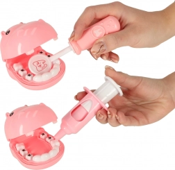 Zábavný a poučný dentálny set s hrošíkom pomôže deťom prekonať strach zo zubára a osvojiť si správnu hygienu. Obsahuje všetko, čo malý zubár potrebuje: hrošíka s vyberateľnými zubami, kefku a pastu, dentálne zrkadielko, striekačku, “vŕtačku”, pinzetu, skaler a vzdelávacie kartičky.