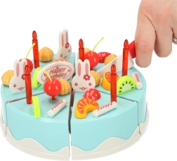 Rozžiarte detskú oslavu touto modrou narodeninovou tortou na krájanie – 75-dielna sada plná ovocia, sviečok a doplnkov na hru na cukrára. Vďaka spojom na suchý zips deti tortu ľahko rozkroja a znova zložia, zdobia podľa fantázie a trénujú jemnú motoriku aj sociálne zručnosti. Vyrobené z bezpečného ABS plastu, vhodné od 3 rokov.