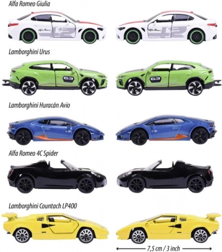 V balení nájdete výber legendárnych vozidiel: ALFA ROMEO 4C Spider, LAMBORGHINI Countach LP 400, LAMBORGHINI Huracán Avio, LAMBORGHINI Urus a ALFA ROMEO Giulia. Vďaka kĺbovým častiam a funkčnému zaveseniu je jazda plynulá a realistická. Perfektné pre deti od 3 rokov aj ako štýlový doplnok do zbierky.