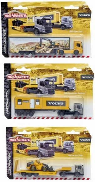 Objavte realistický kovový nákladný automobil Volvo, ktorý poteší detailným spracovaním a variabilitou. Vybrať si môžete z troch atraktívnych variant – s prívesom a kolesovým nakladačom, s dvoma stavebnými kontajnermi alebo ako kamión s odpojiteľným prívesom. Robustný kovový podvozok zabezpečuje dlhú životnosť a stabilitu pri jazde aj hraní.